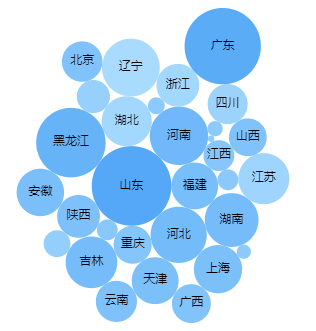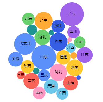 Case1:如图所示,每一个气泡代表一个省,气泡的大小表示该省产品销售额的多少,用不同的颜色来区分不同的省。
