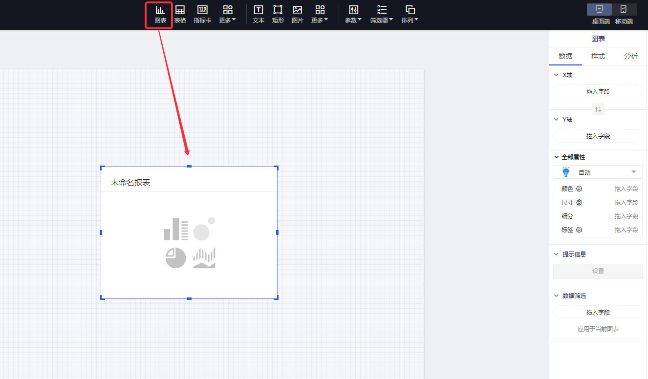 (1)选择“图表”控件,在画布上插入“图表”;