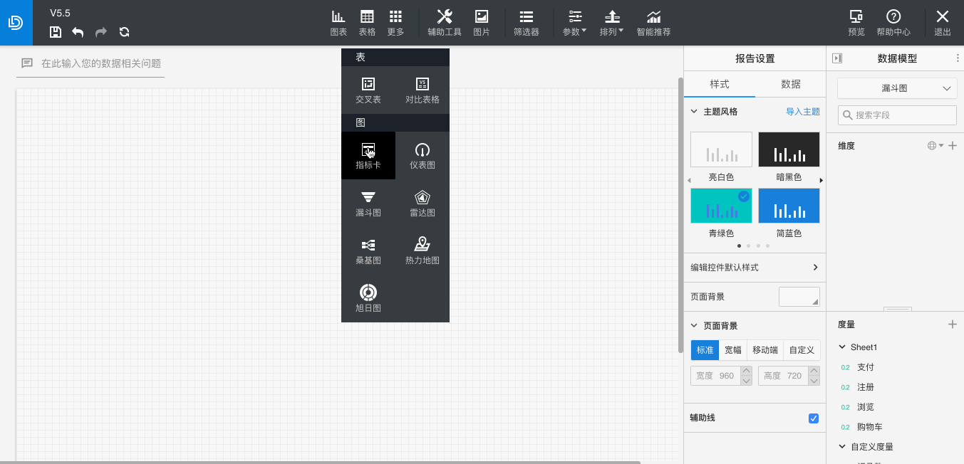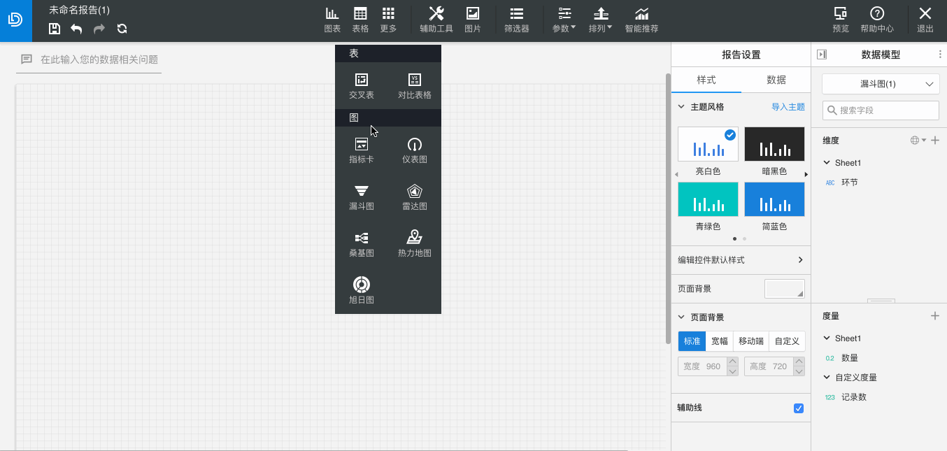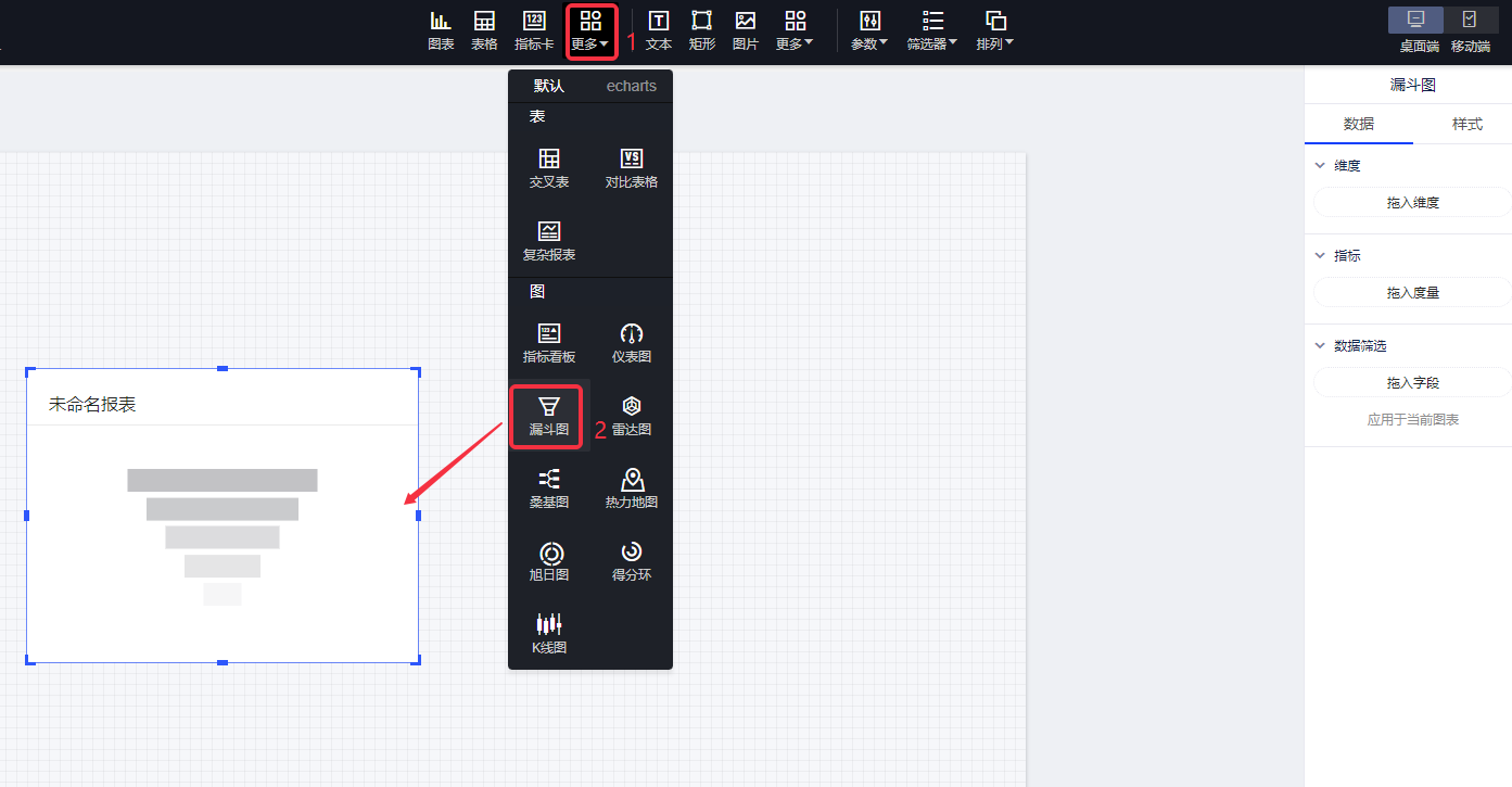 (1)选择“漏斗图”控件,在画布上插入“漏斗图”;