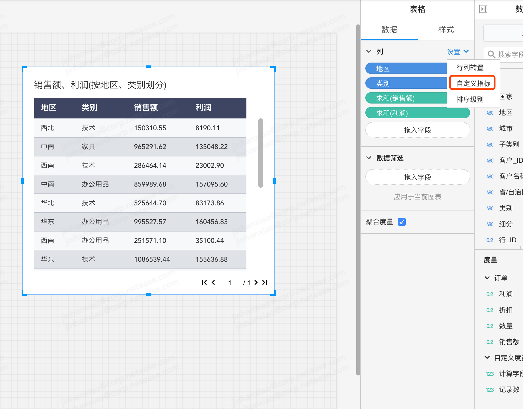- 自定义指标指的是阅览状态下允许用户自定义选择是否显示的指标,开启默认选中的自定义指标在初始状态下显示于表格。3.3 聚合数据总计