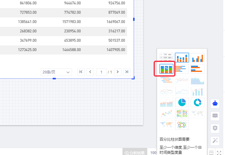 (1)接上文关于基本柱状图的操作,在属性面板上选择“堆叠柱状图”;