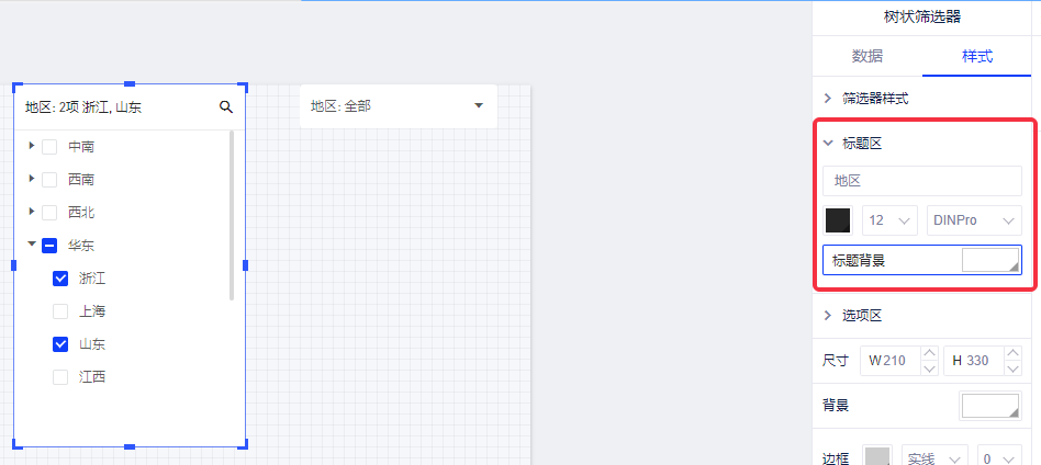 (4)可以修改整个树状筛选器的背景颜色和边框。