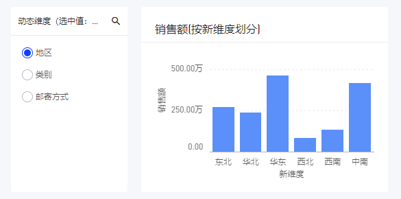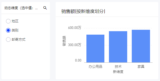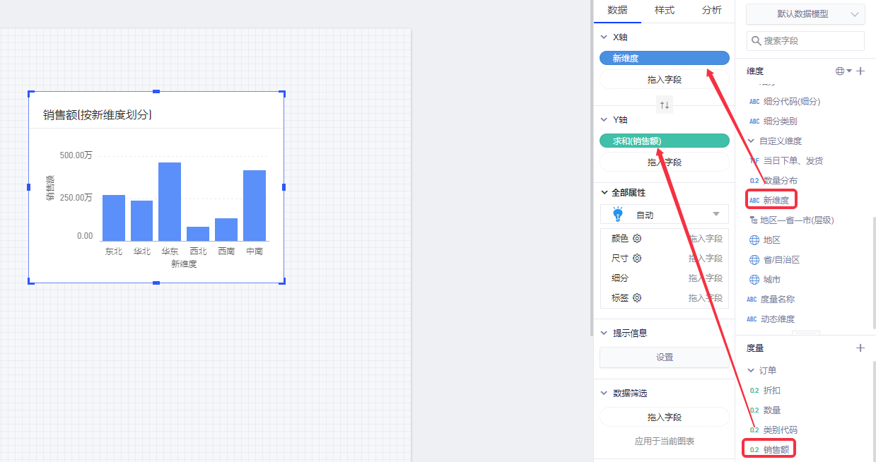 (3)新建一个图表,把刚才创建的计算维度拖入到X轴,销售额拖入y轴;