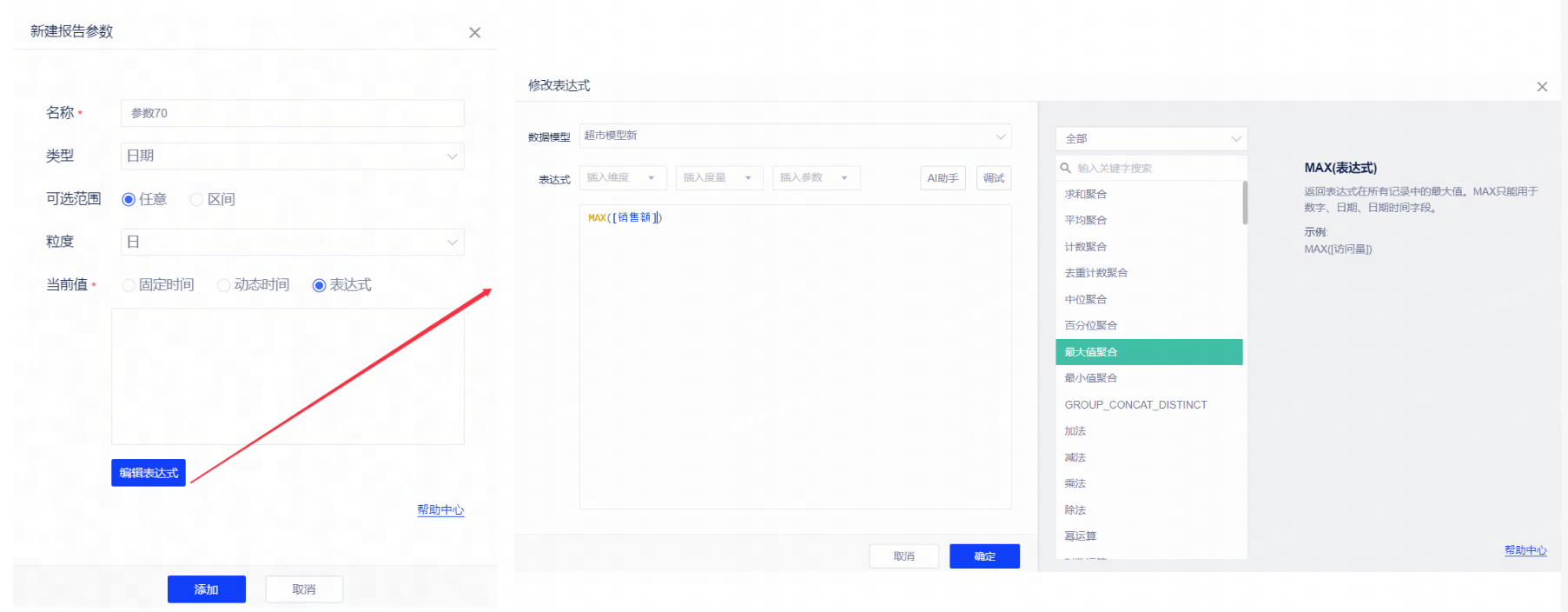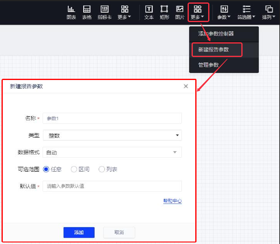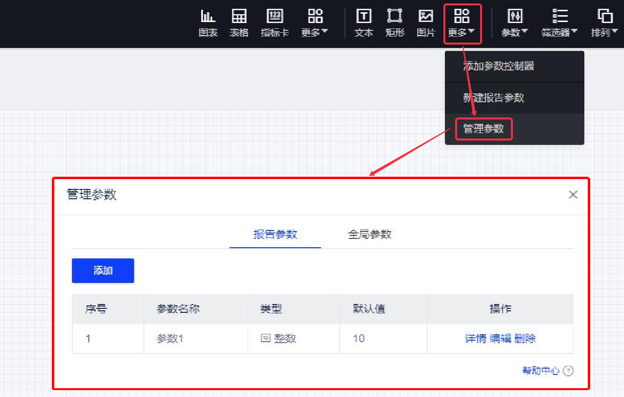 - 直接输入[参数].[参数名],依旧可以生效,报告参数、全局参数重名时优先选择报告参数。