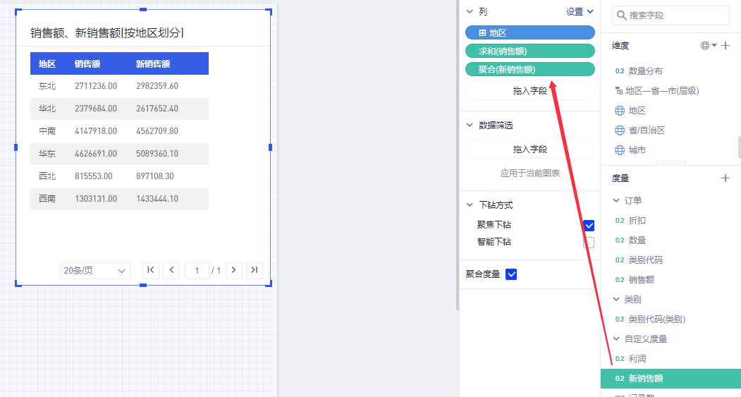 出于演示需要,这里新建一个“新销售额”字段,通过参数来调整销售额预计增幅。