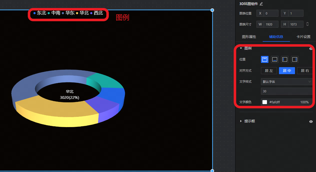 - 提示框:设置3D环图的提示框的背景颜色及边框的颜色和宽度。