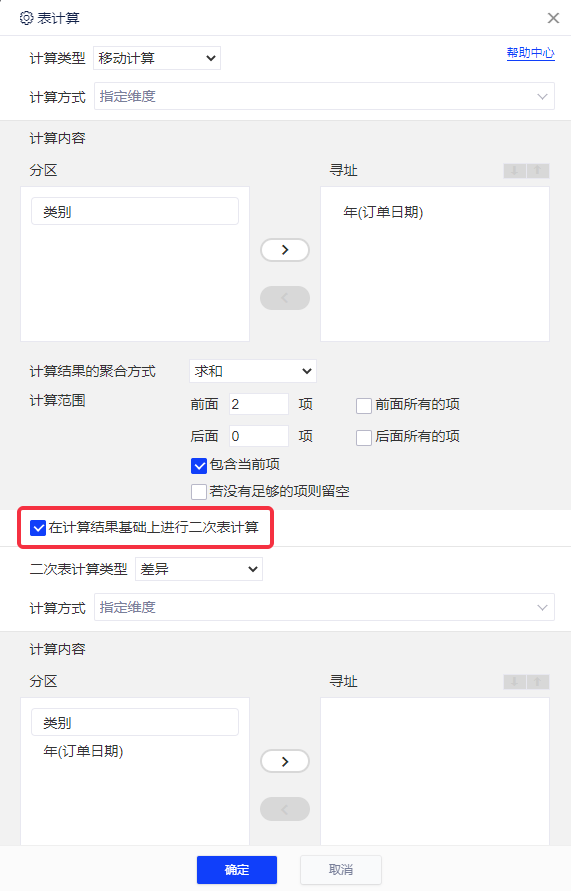(4)您可以继续在这个移动计算上做表计算,只需要在可以图2的配置面板中最下面的复选框中打上勾,并在下面的二次表计算类型中做进一步的计算。