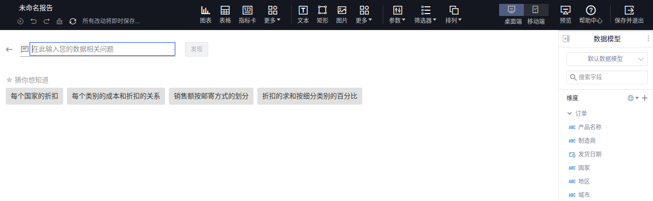 当您在分析数据的过程中,可以直接支持通过简单的自然语言快速生成分析图表,并添加到报告中,能够提升制作分析报告的效率。本文将为您介绍智能问答的使用方法。