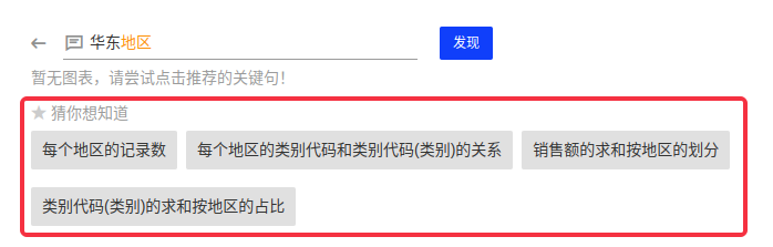 (5)如果您输入内容无法匹配到当前的语法,系统会提示暂无图表;系统将根据输入语句中的关键词自动生成几个可能的关键句供您选择;