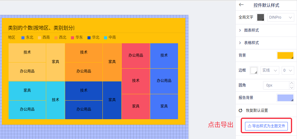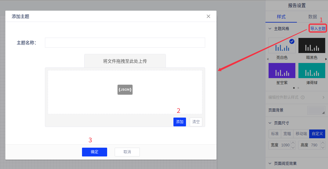 导出:您对报告中控件的样式设置完毕后,可将其导出为样式模版(模版为json格式的文件),留作之后制作报告时重复使用。
