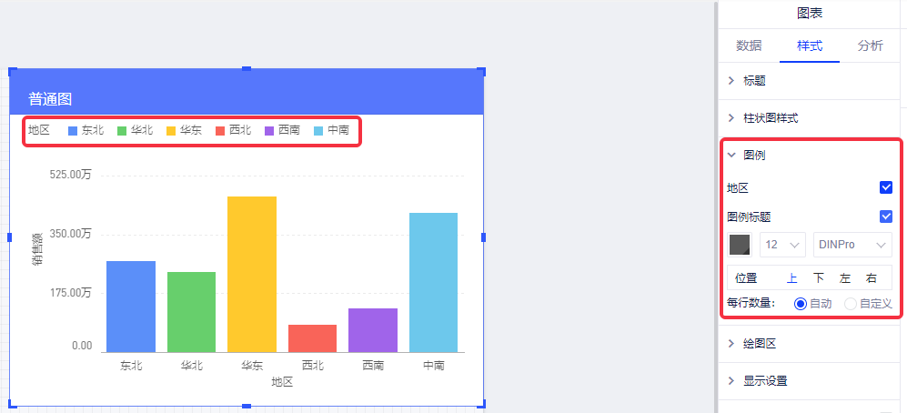 图例指图中红框内部分;图例可选择显示或不显示,默认显示图例;图例文字的字色、字体、字号均可被设置;