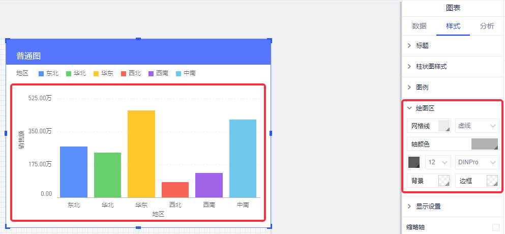 绘图区指图中红框内部分;可设置该区域网格线的颜色和线形、坐标轴的颜色、绘图区内的背景颜色和边框颜色;