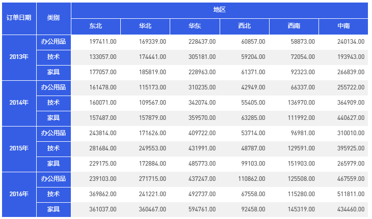 二维表指没有透视结构的表格,可以用表格控件制作,如图所示: