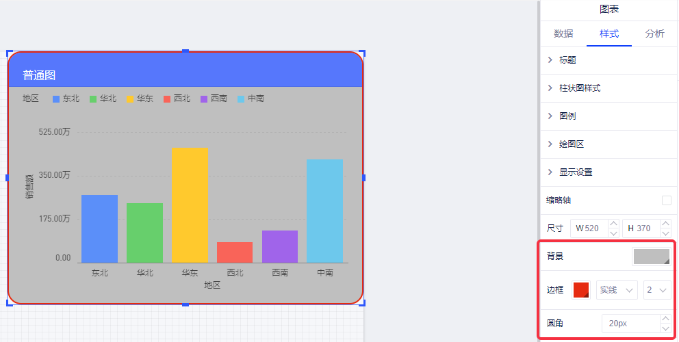 在所有可视化组件中,组件的样式处有相同的部分。本文将分别介绍普通图、透视图、透视表、二维表样式的功能说明和用法。