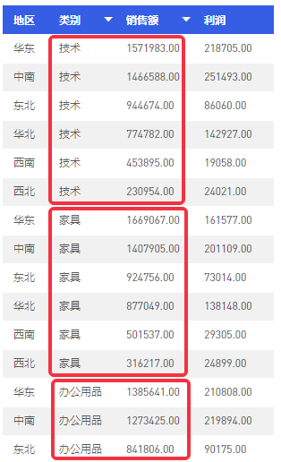 排序完成后,你可以看到,首先按照产品类别进行排序,每个类别中的销售额也是按照降序排列。