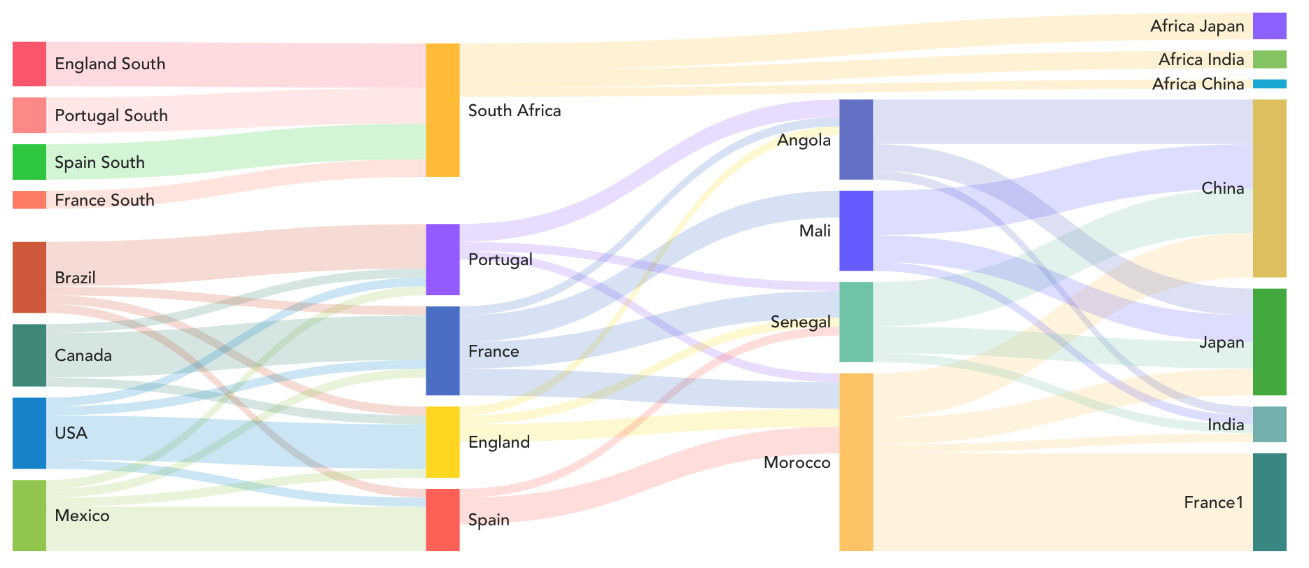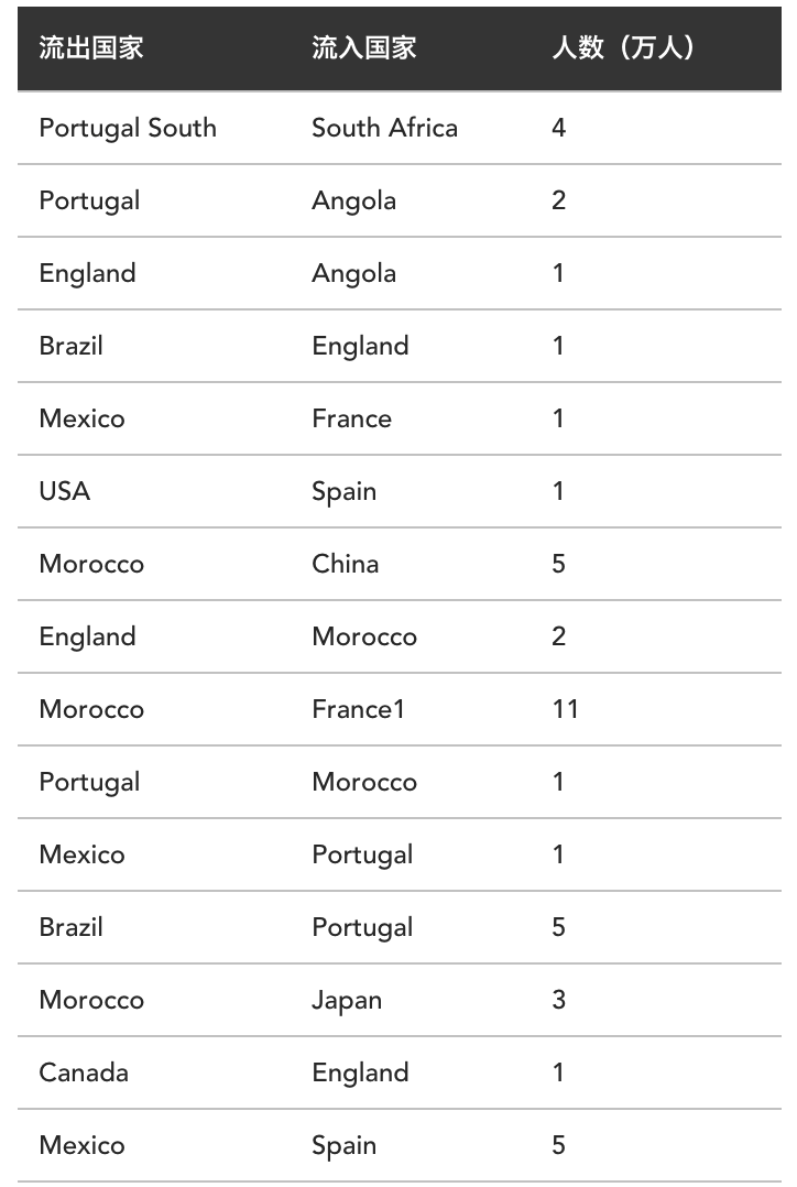如果用桑基图来展示这份数据,我们可以更直观的看到不同国家之间的人口流动情况,如图所示: