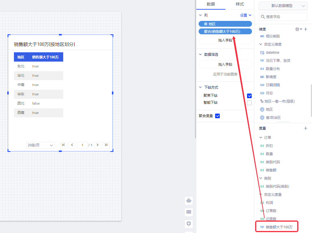 SUM([销售额]) > 1,000,000结果: