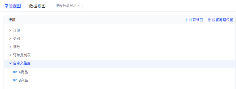 (2)添加字段设置名字。将「子类别」复制作为 A 商品,「订单复制表-子类别」复制作为 B 商品。如下图所示:
