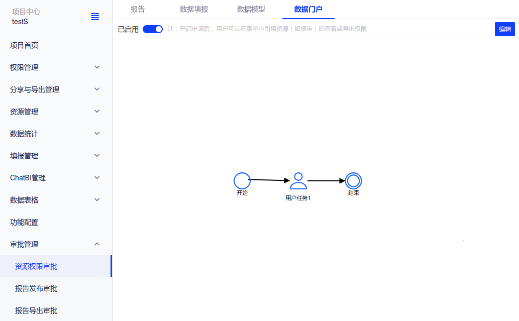 (1)数据门户菜单支持权限申请及审批,支持同时申请菜单内引用资源的查看和导出权限,支持自定义审批流程