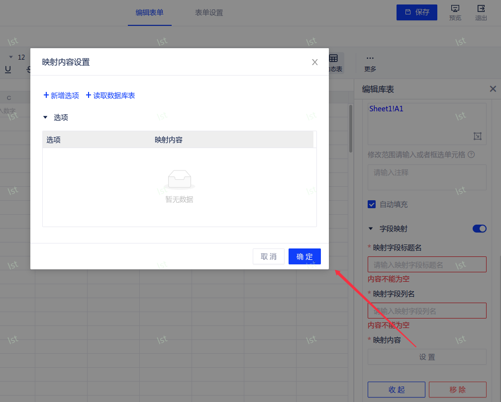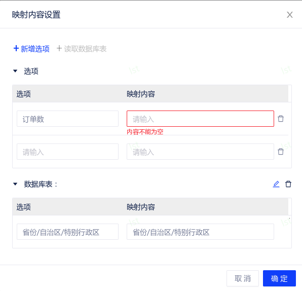 - 映射内容:仅定义关系,不定义选项内容。点击“设置”后由用户直接输入选项、映射内容