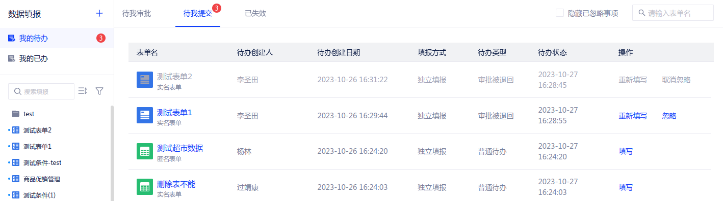 若表单状态为已失效、已过期,则会自动移入已失效tab页