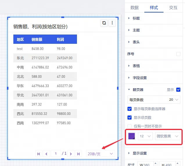 2、控件:翻页器支持调整字体、字号大小。