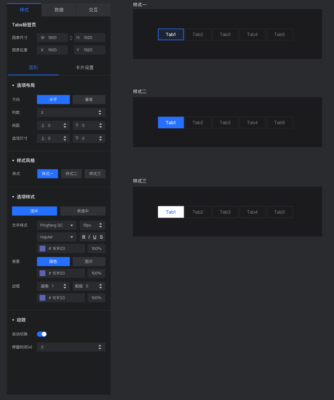 4、“选项卡”组件升级,支持更灵活美观的样式设置,支持自动轮播
