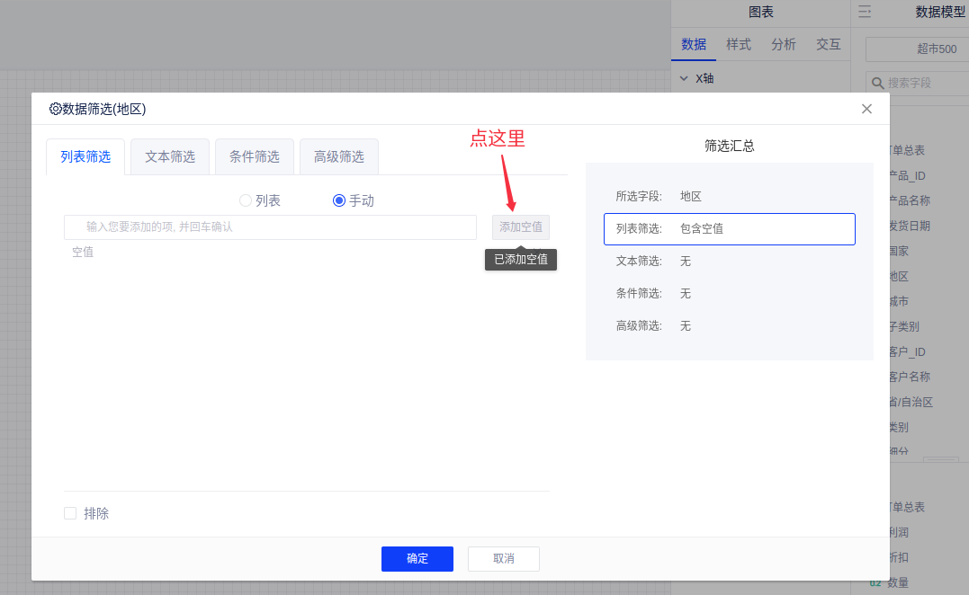 空值筛选:报告、数据准备、数据模型内的数据筛选支持更易用的空值筛选。