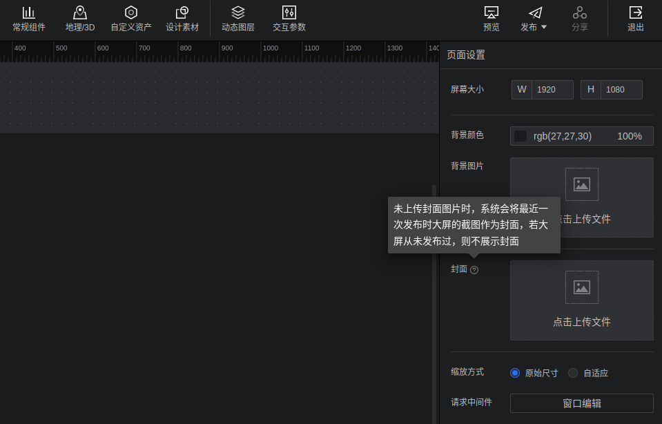 支持将自定义图片或者大屏截图作为封面。