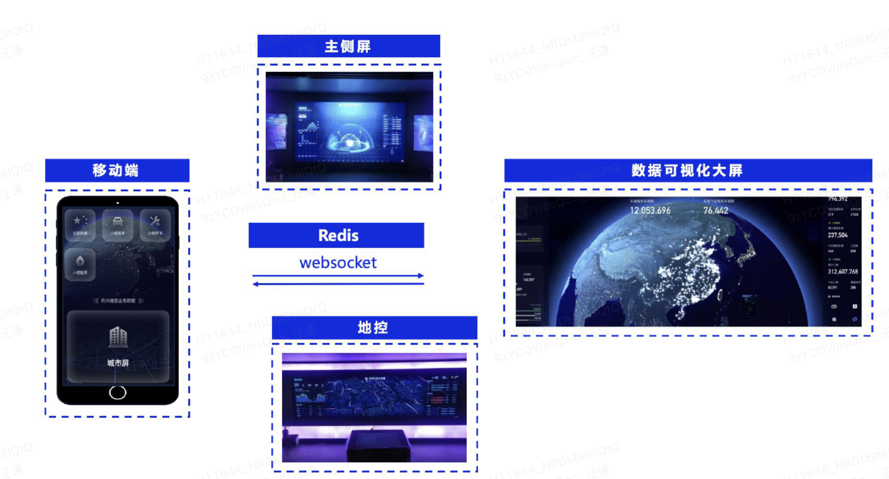 支持跨大屏绑定交互参数,实现主屏控制其他展示屏的场景(如使用PC或手机,控制大屏幕上展示大屏的切换)。