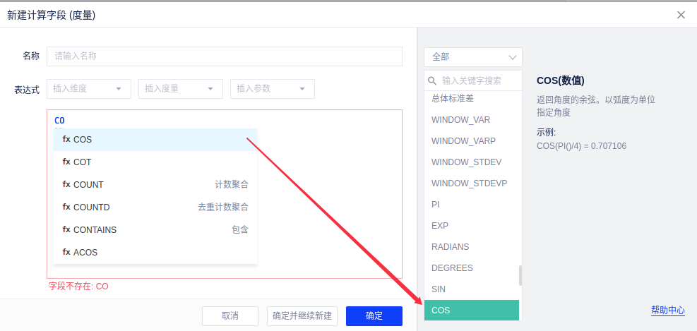 计算字段经常涉及复杂的公式计算,用户在使用时比较容易出错。为此我们做了以下优化: