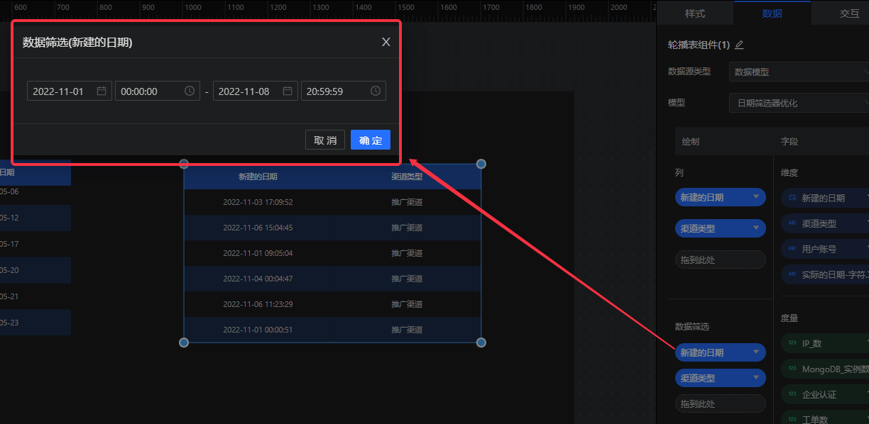 • 维度字段(日期类型)支持日期筛选