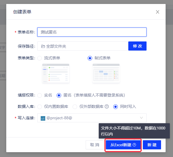 (2)用户可以通过上传Excel生成填报模版