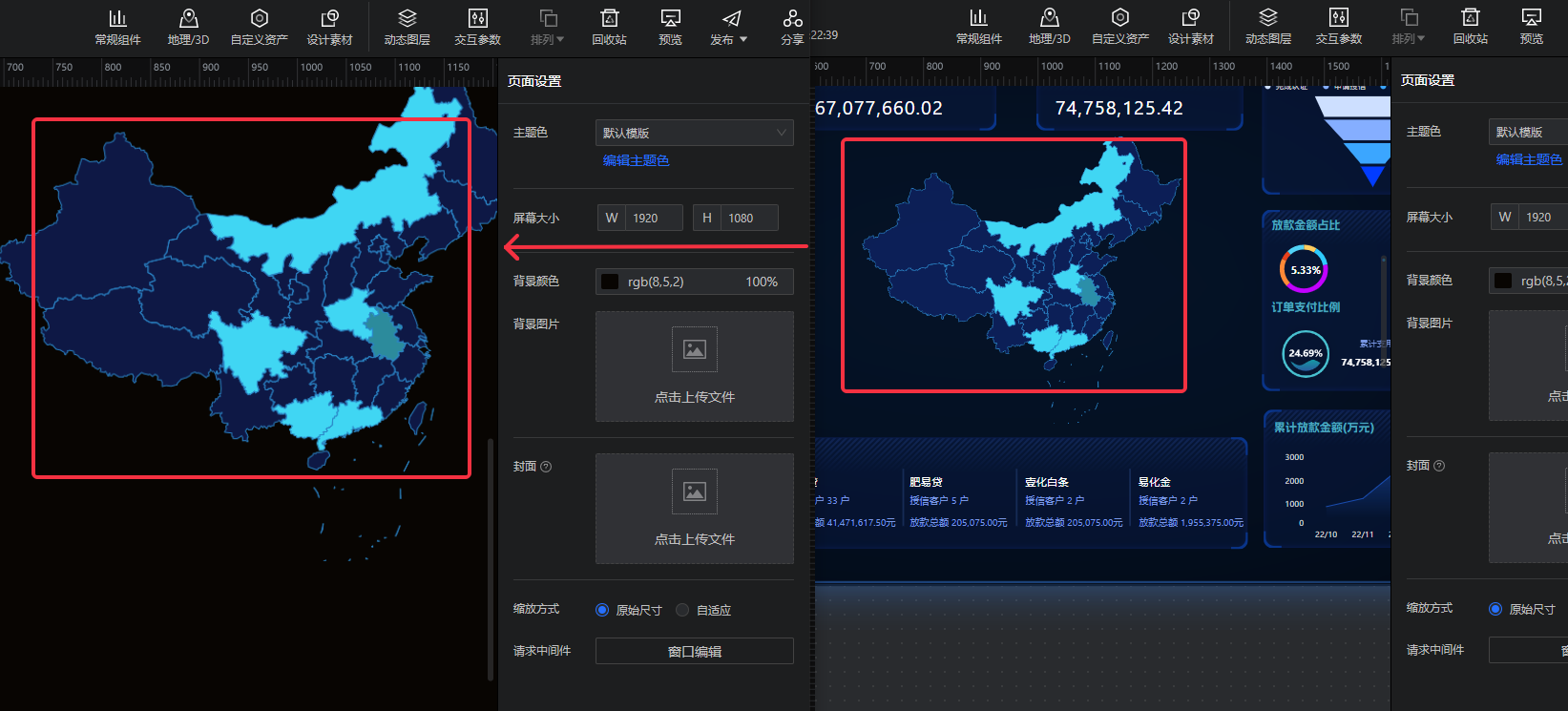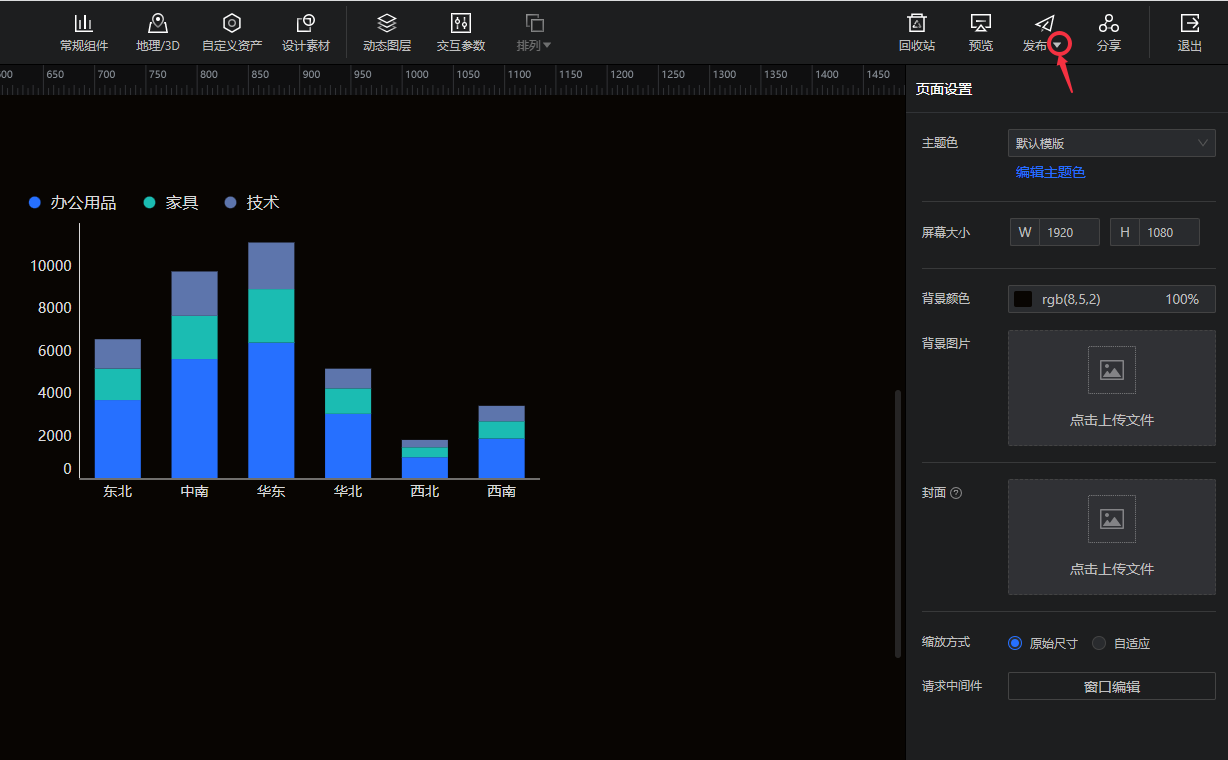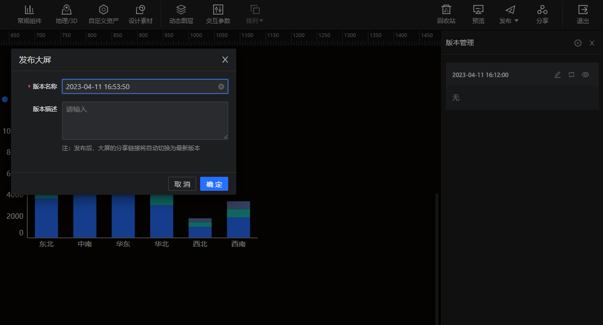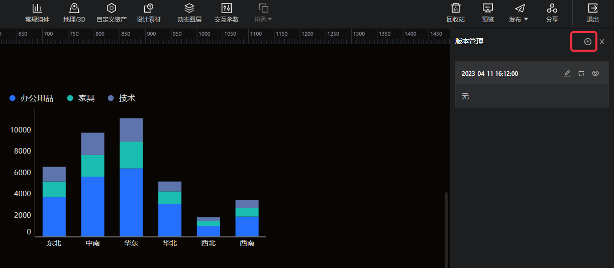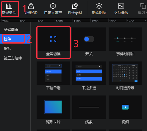 新增全屏切换组件,点击组件实现全屏浏览大屏,再次点击退出全屏浏览