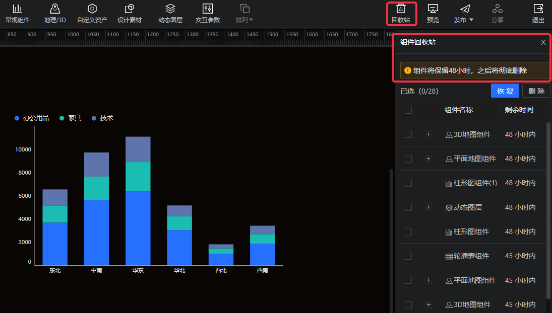 2.13 新增大屏回收站功能,删除的组件48小时内可在回收站中恢复