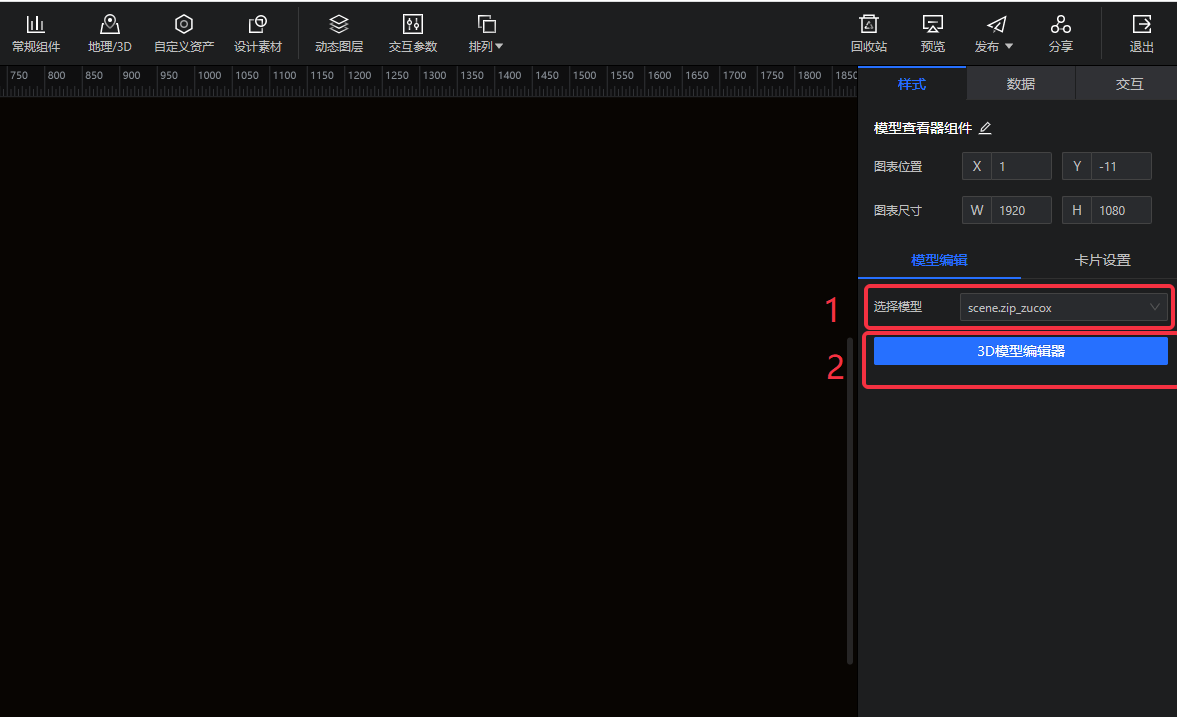 2.12 增加3D模型编辑器,支持在线编辑3D模型,配置3D模型的交互动作