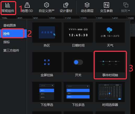 - 2.11 支持设置参数时间轴,控制参数的时序变化,以实现按顺序自动执行多个大屏交互动作的场景