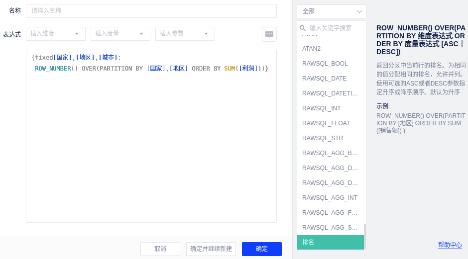 计算字段新增Row_Number排名函数,并支持跟LOD函数结合使用,以实现将排名结果作为维度字段并进行后续分析——比如将排名前5名之外的维度成员归为“其他”