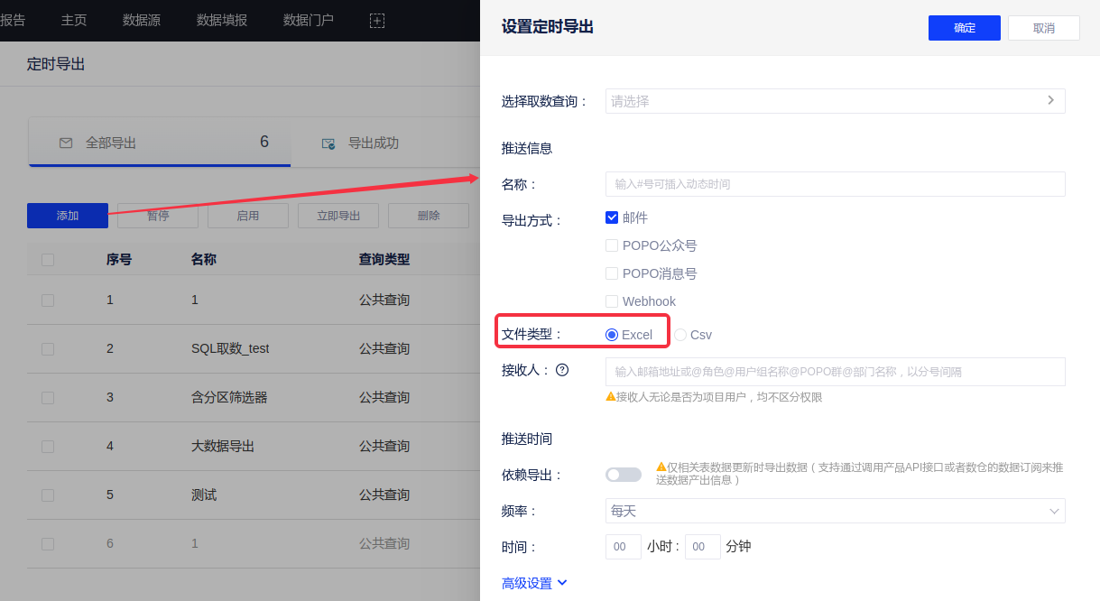 定时导出增加excel格式导出;
