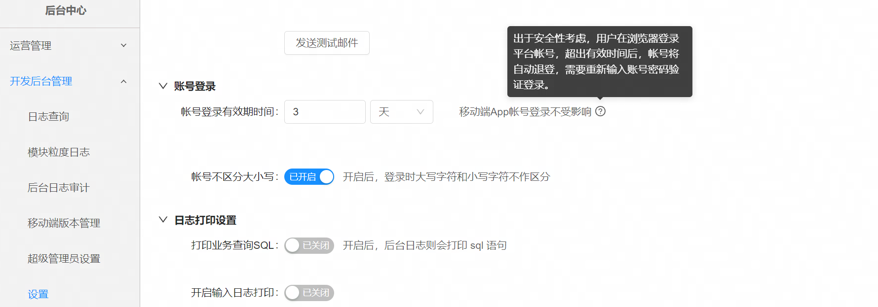 (4)私有部署专有:用户登录帐号支持设置是否区分大小写