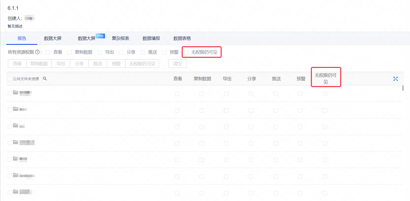 (1)资源权限:在权限配置时支持设置无权限仍可见