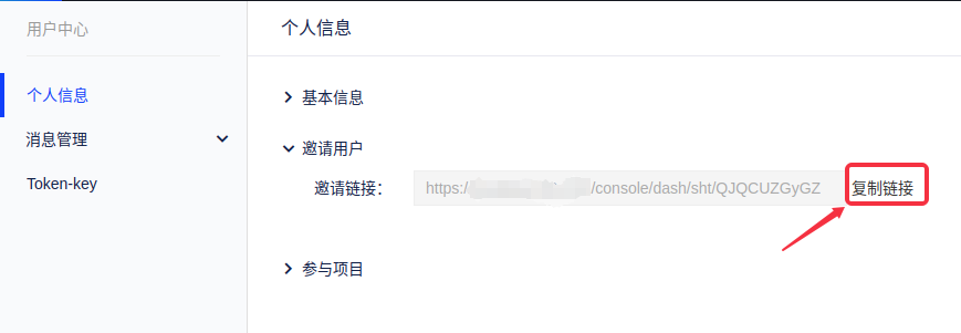 第一步:在用户中心,将域的邀请链接发给目标用户。