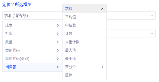 • 选择模型后,度量列表下拉选择该模型对应的度量及对应聚合方式;