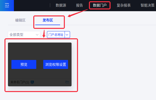 (3)浏览权限设置完毕后,即完成了发布操作,您可在数据门户主页-发布区找到您刚发布的门户;