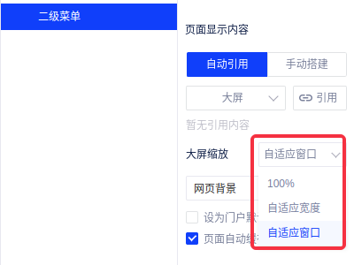 d 报告/大屏缩放:当引用报告和大屏的内容时支持缩放,提供了“100%”、“自适应宽度”、“自适应窗口”三种缩放方式