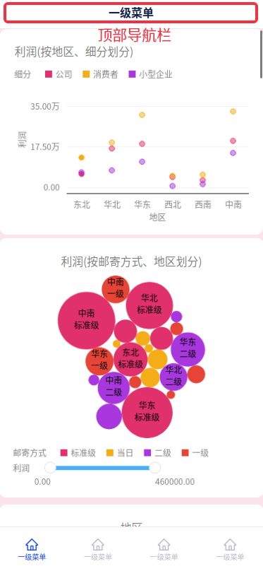 移动端数据门户的操作页面与电脑端分布基本一致,具体也包括顶部工具栏、左侧工具栏和门户画布。