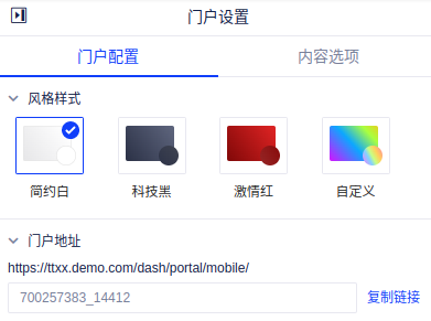 - (5)风格样式:内置三种风格主题,您也可以通过自定义设置门户的背景风格