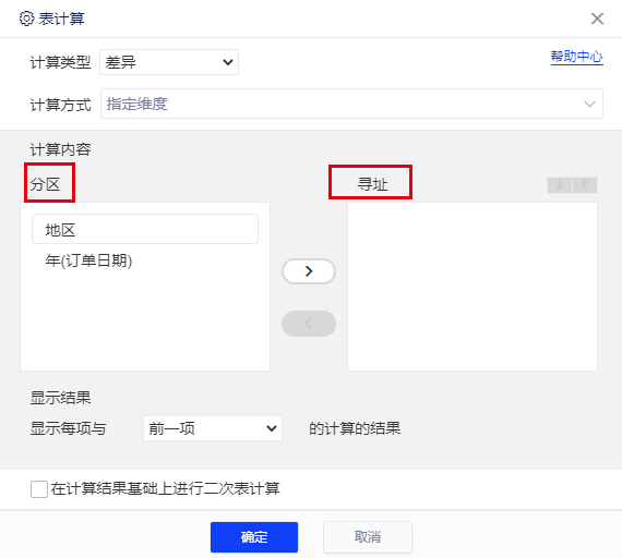 在表计算的配置面板内,您可能会对面板中的分区、寻址有疑惑,这里来解释一下。