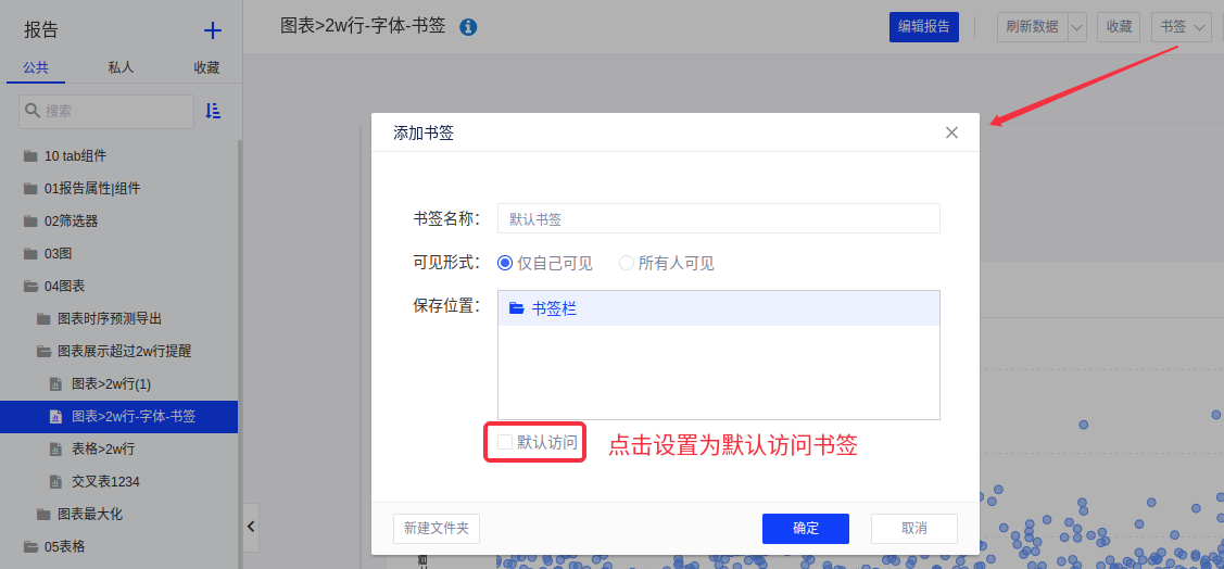 (3)添加书签时,可以选择该书签是否对他人可见,若选择对他人可见,则所有拥有该报告阅览权限的用户都可以看到该书签;