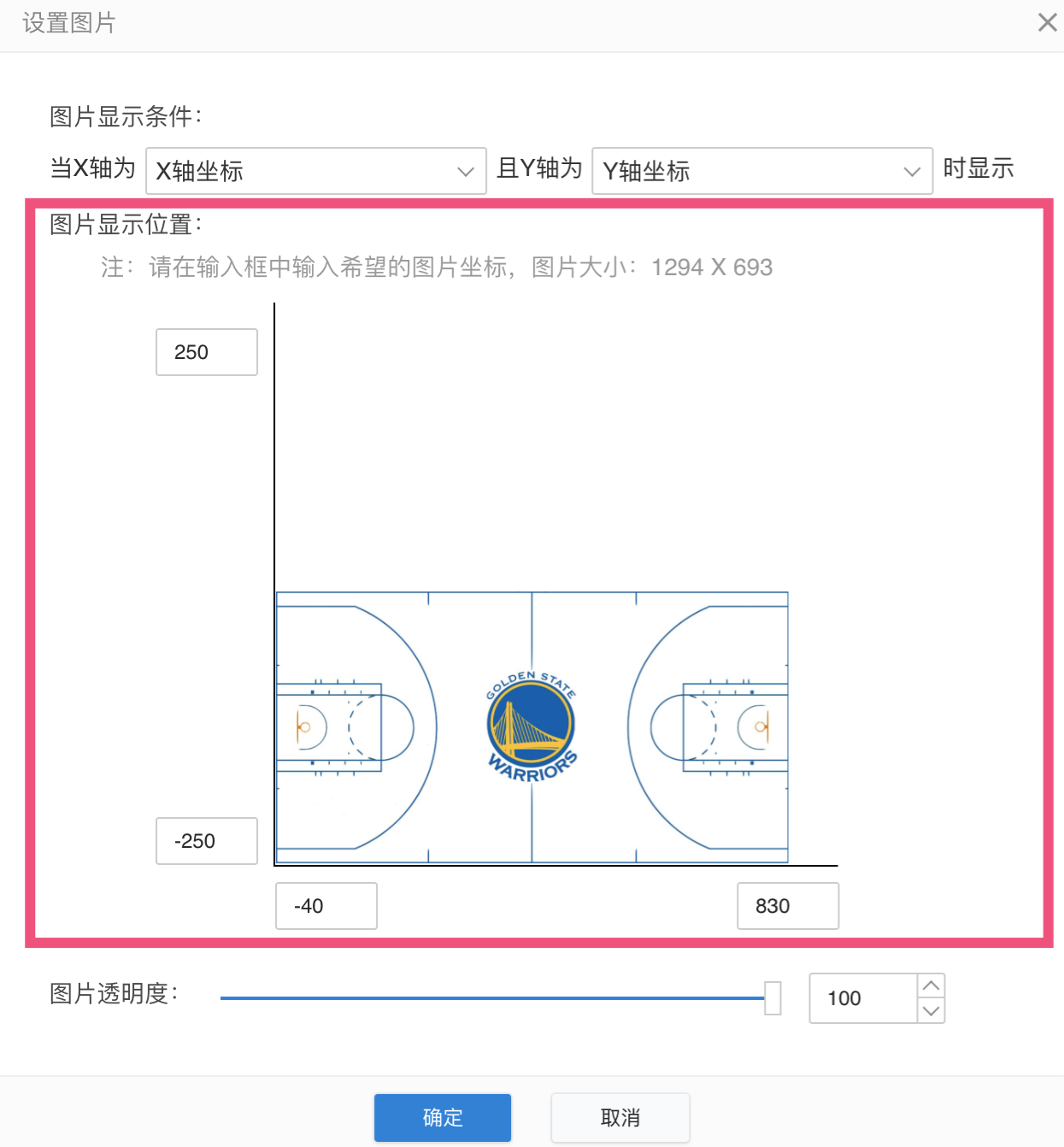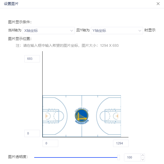 (3)设置的图片显示条件:将字段“X轴坐标”拖至图表控件的X轴,将字段“Y轴坐标”拖至图表控件的Y轴时,会将图片作为图表背景显示。